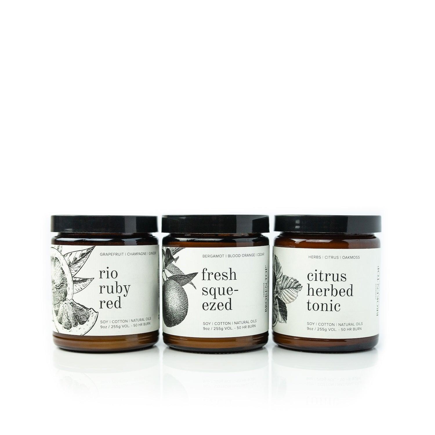 Enjoy 3 of our most popular citrus 9oz Soy Candles.